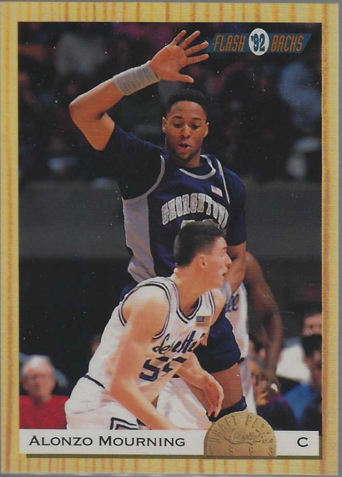 Basketball (Brand: Classic) (Type: Draft Picks 1993) (Subtype: Flash Backs ’92) (Kind of Packaging: Semi-Rigid with Sleeve) (Year: 1993) (Unique Number: 105) (Numbered Card: ) (Player: Alonzo Mourning))