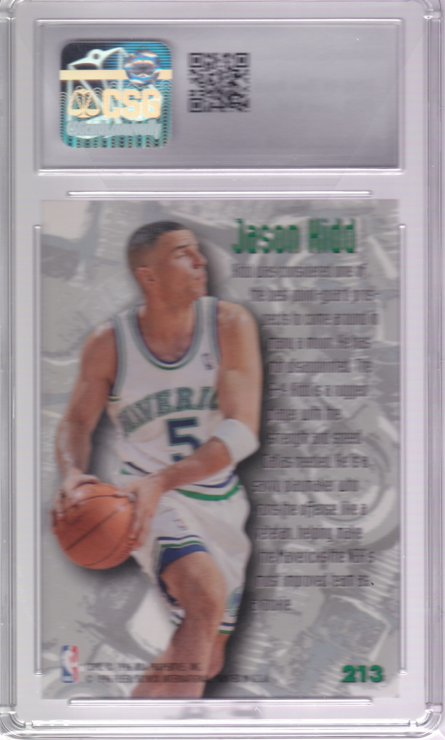 Basketball (Brand: Fleer/Skybox) (Type: 1995-96 Fleer Metal) (Subtype: Nuts & Bolts) (Kind of Packaging: Graded Slabbed) (Year: 1996) (Unique Number: 213) (Grade: NM/Mint+ 8.5) (Feature: Jason Kidd)