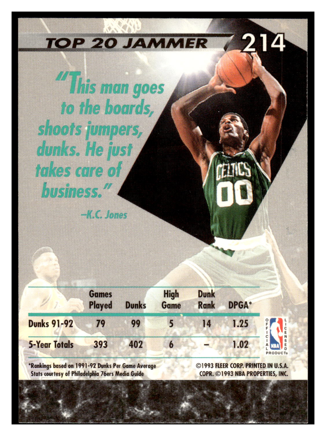 Basketball (Brand: Fleer) (Type: ’92-93 Fleer Ultra) (Subtype: Dunk Rank ’17, NBA Jam Session) (Hall of Famer: ) (Superstar: ) (Rookie: ) (Kind of Packaging: Semi-Rigid with Sleeve) (Year: 1993) (Unique Number: 214) (Numbered Card: ) (Player: Robert Parish)