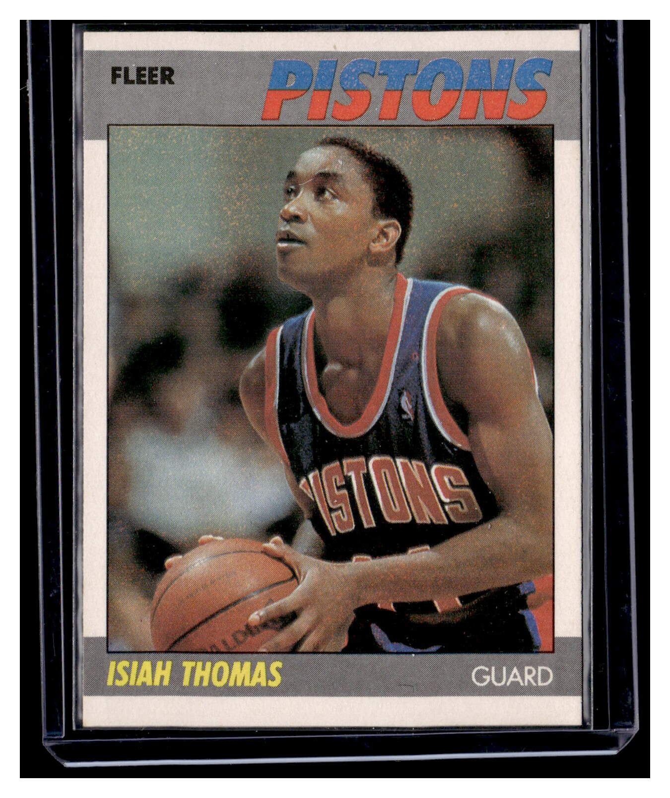 Basketball (Brand: Fleer) (Type: ) (Subtype: ) (Hall of Famer: ) (Superstar: ) (Rookie: ) (Kind of Packaging: Toploader with Sleeve) (Year: 1987) (Unique Number: ) (Numbered Card: 106 of 132) (Player: Isiah Thomas)