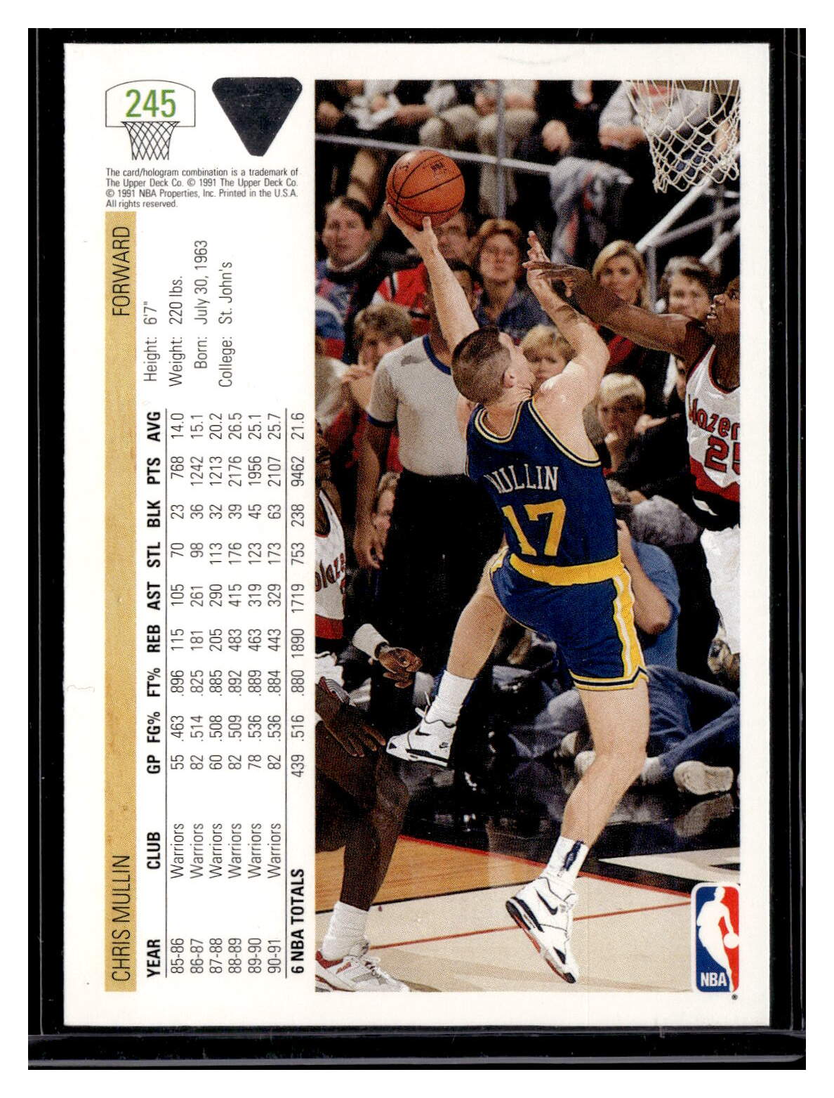 Basketball (Brand: Upper Deck) (Type: Upper Deck 91 92) (Subtype: ) (Hall of Famer: ) (Superstar: ) (Rookie: ) (Kind of Packaging: Toploader with Sleeve) (Year: 1991) (Unique Number: 245) (Numbered Card: ) (Player: Chris Mullin)