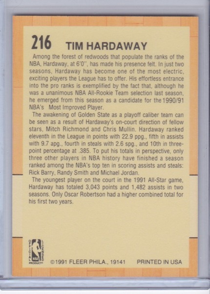 Basketball Card (Player: Tim Hardaway) (Brand: Fleer) (Hall of Fame: No) (Superstar: Yes) (Rookie: No) (Year: 1991)