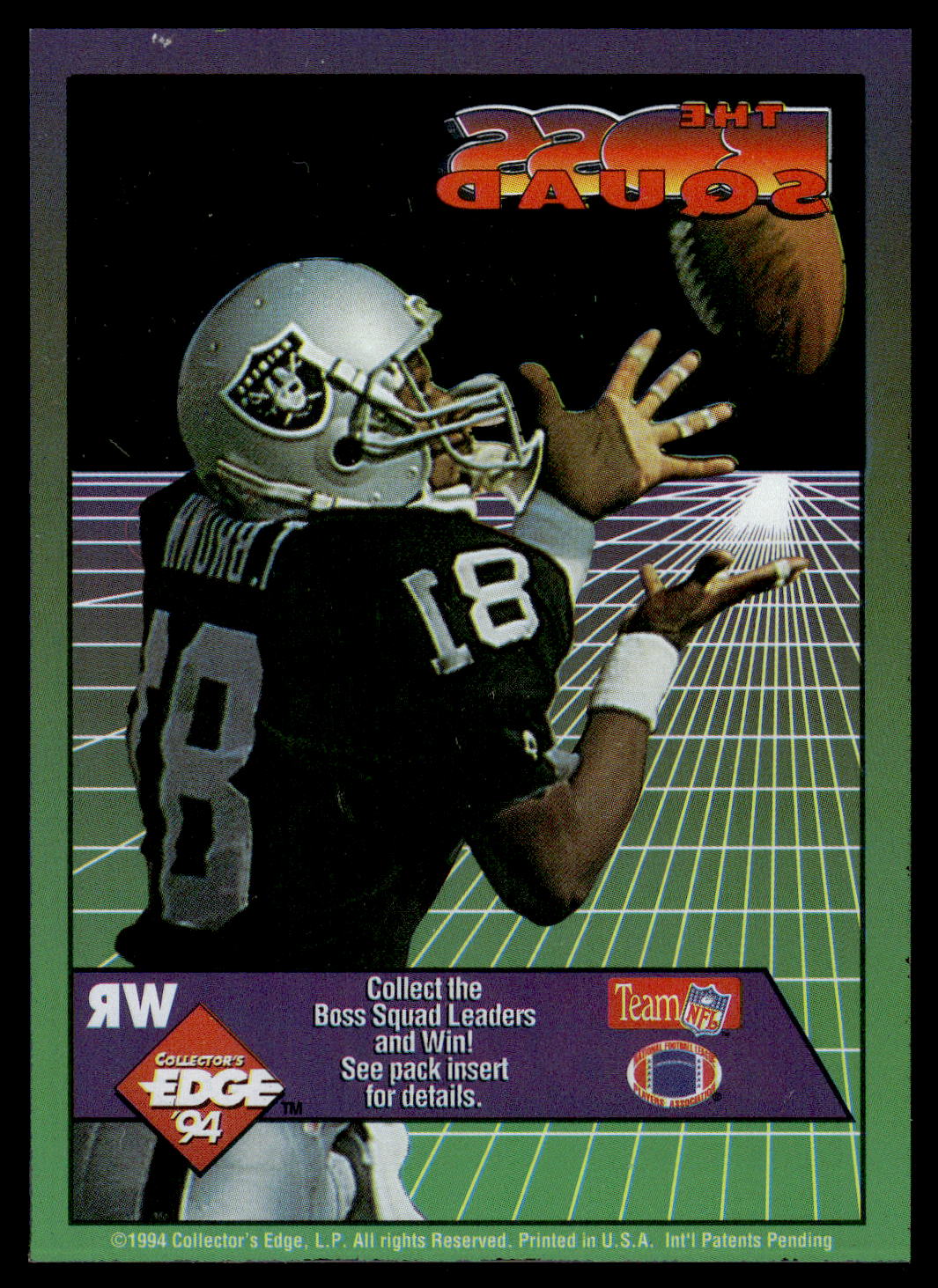 Football (Brand: Collector’s Edge) (Type: Collector’s Edge ’95) (Subtype: The Boss Squad) (Hall of Famer: ) (Superstar: ) (Rookie: ) (Kind of Packaging: Semi-Rigid with Sleeve) (Year: 1994) (Unique Number: 20) (Numbered Card: ) (Player: Tim Brown)
