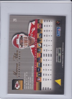 Football (Brand: Pinnacle) (Type: Select ’95 Certified Edition) (Subtype: ) (Hall of Famer: ) (Superstar: ) (Rookie: ) (Kind of Packaging: Semi-Rigid with Sleeve) (Year: 1995) (Unique Number: 29) (Numbered Card: ) (Player: Marcus Allen)
