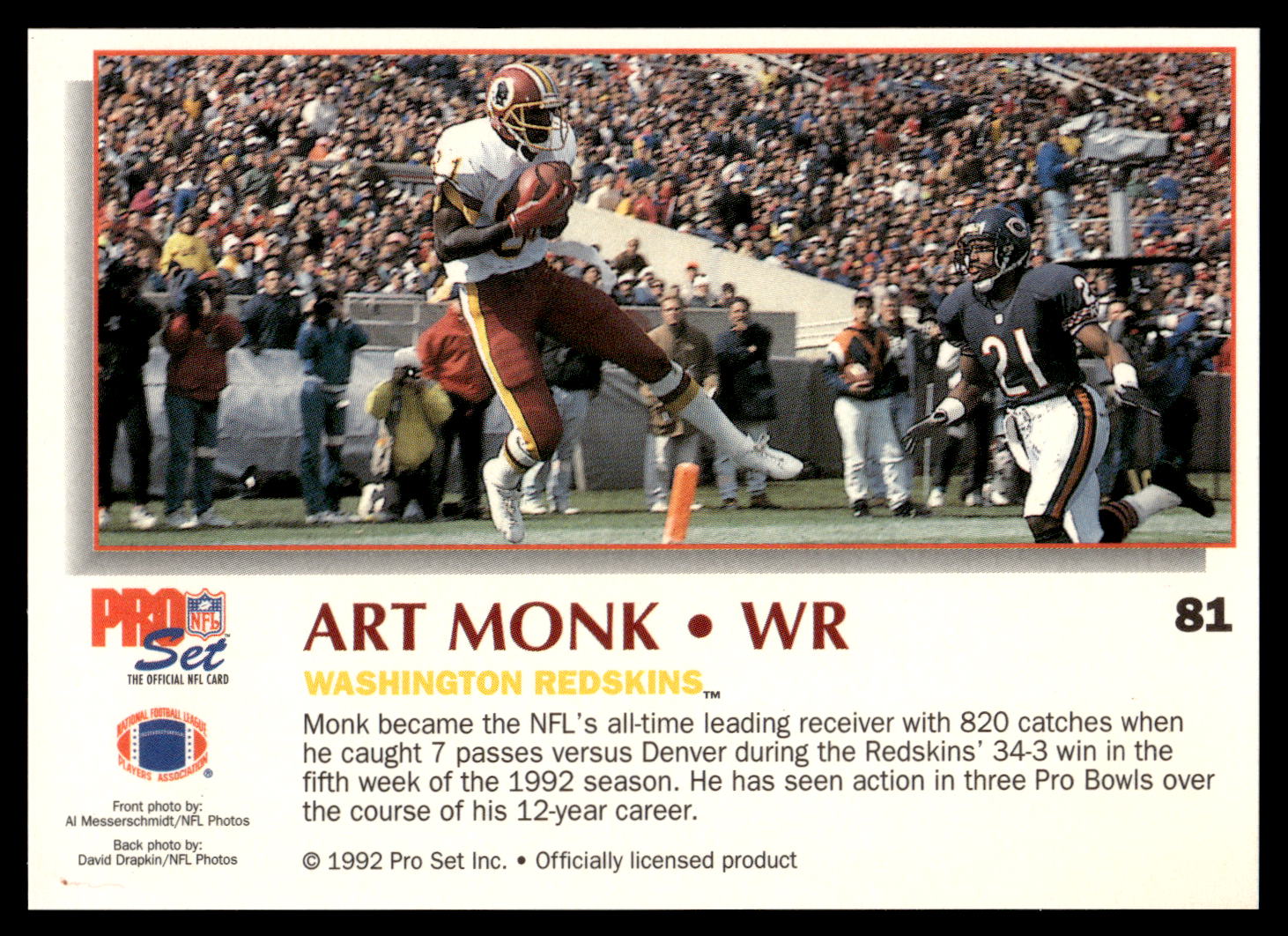 Football (Brand: Pro Set) (Type: Pro Set Power) (Subtype: ) (Hall of Famer: ) (Superstar: ) (Rookie: ) (Kind of Packaging: Semi-Rigid with Sleeve) (Year: 1992) (Unique Number: 81) (Numbered Card: ) (Player: Art Monk)
