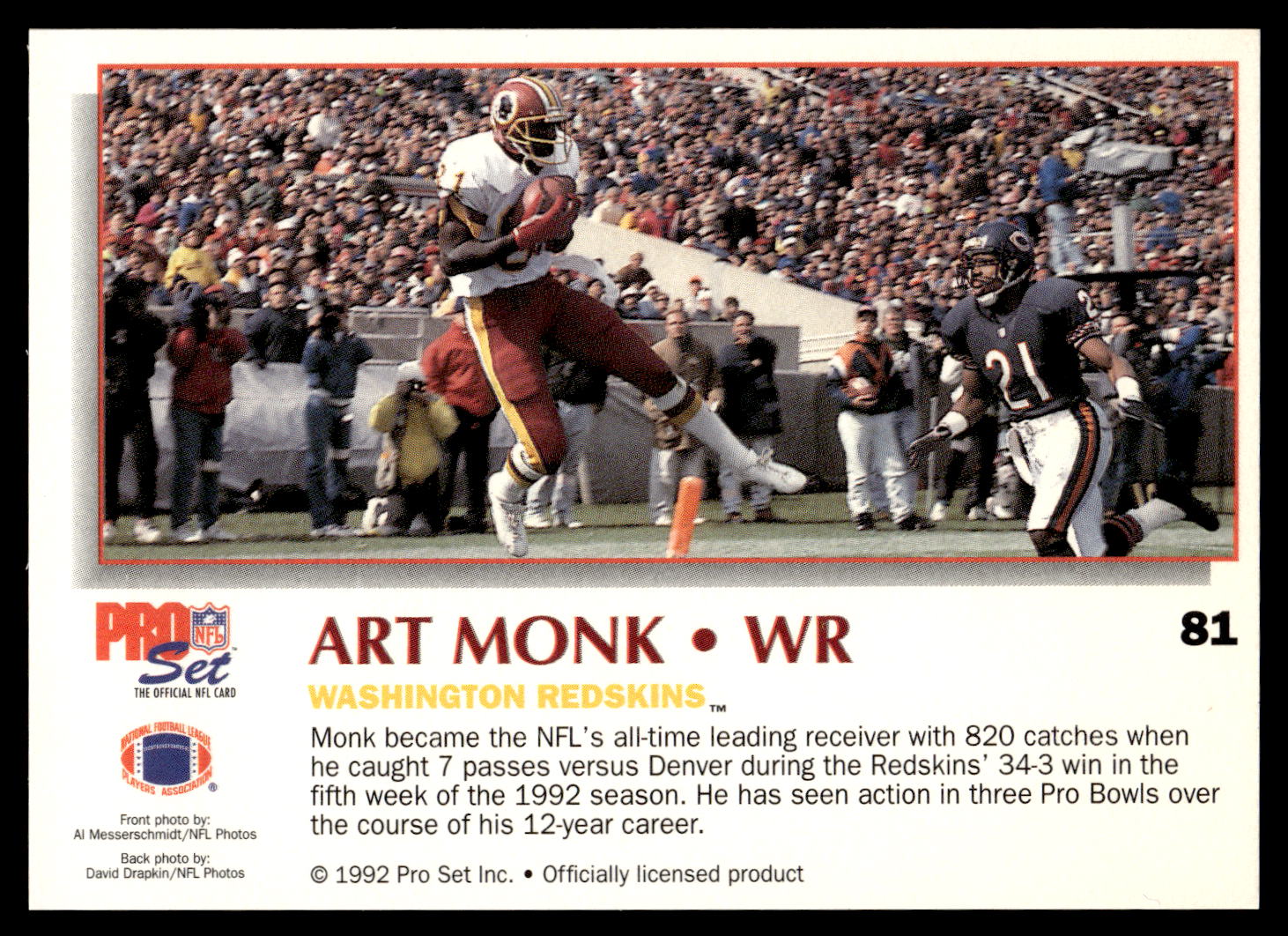 Football (Brand: Pro Set) (Type: Pro Set Power) (Subtype: ) (Hall of Famer: ) (Superstar: ) (Rookie: ) (Kind of Packaging: Semi-Rigid with Sleeve) (Year: 1992) (Unique Number: 81) (Numbered Card: ) (Player: Art Monk)