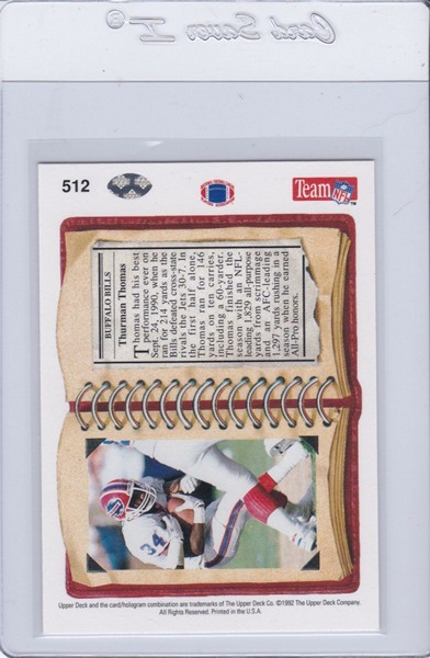 Football-Upper Deck-NFL Scrapbook-Semi-Rigid-Thurman Thomas-1992