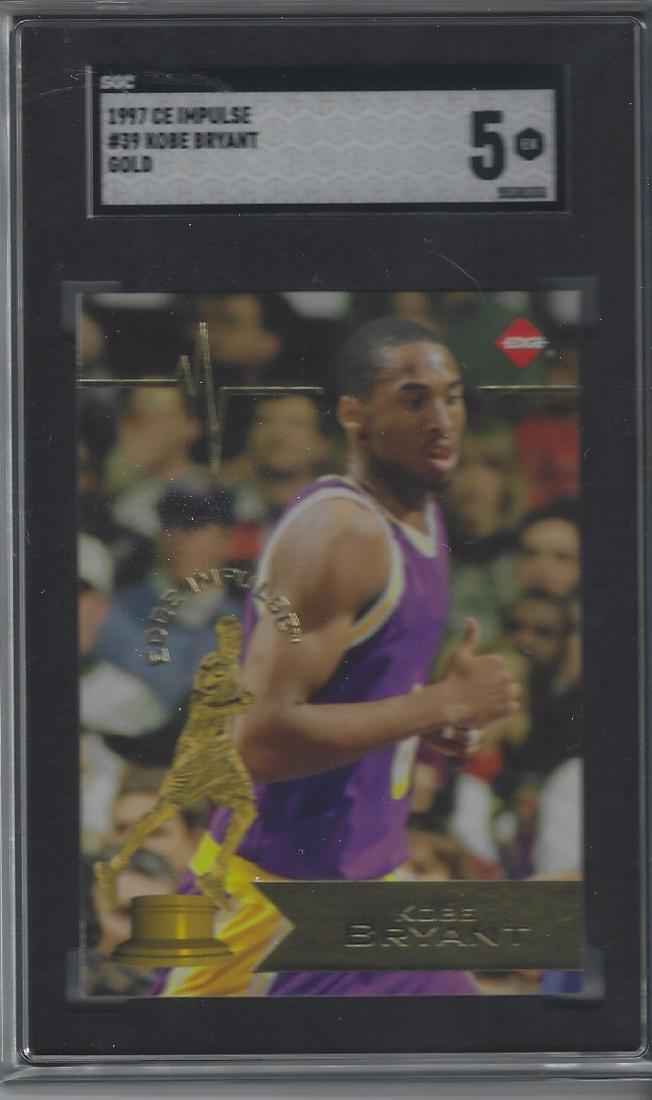 Graded Basketball Cards (Brand: Collector’s Edge) (Type: Impulse Gold) (Subtype: NA) (Kind of Packaging: Graded) (Grading Company: SGC) (Grade: 5 EX) (HALL OF FAME: NA)(SUPERSTAR: NA) (ROOKIE: NA) (Year: 1997) (Unique Number: 39) (Numbered Card: NA) (Player: Kobe Bryant)