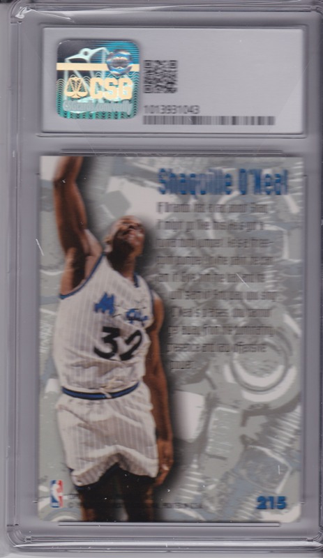 Graded Basketball Cards (Type: 1995-96 Metal) (Subtype: Nuts & Bolts) (Copyright Year: 1995) (Grading Co.: CSG) (Grade: 9 Mint) (Unique Number: 215)(Numbered Card: )(Player: Shaquille O’Neal)