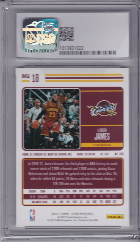 Graded Basketball Cards (Type: 2016-17 Studio) (Subtype: ) (Copyright Year: 2017) (Grading Co.: CSG) (Grade: 9.5 Gem Mint) (Unique Number: 18)(Numbered Card: )(Player: LeBron James)