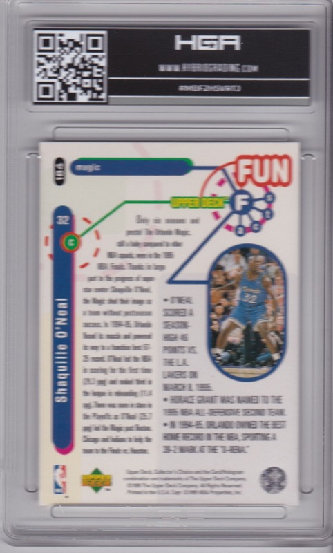 Graded Basketball Cards (Type: Collector’s Choice) (Subtype: Fun Facts) (Copyright Year: 1995) (Grading Co.: HGA) (Grade: 9.0 Mint) (Unique Number: 184)(Numbered Card: )(Player: Shaquille O’Neal)