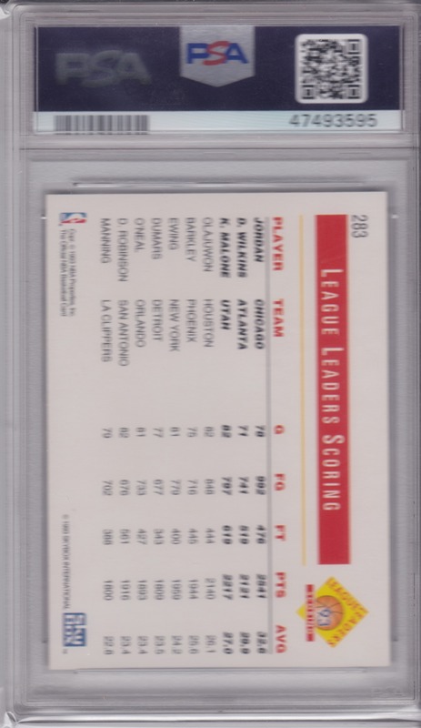Graded Basketball Cards (Type: NBA Hoops) (Subtype: 93 Scoring Leaders) (Copyright Year: 1993) (Grading Co.: PSA) (Grade: 9 Mint) (Unique Number: 283)(Numbered Card: )(Player: Jordan, D. Wilkins, K. Malone)