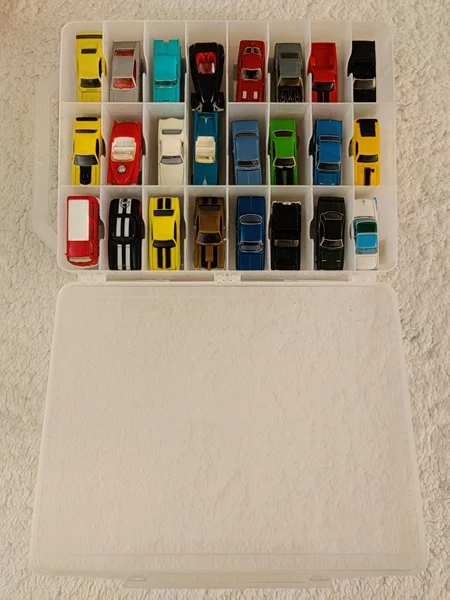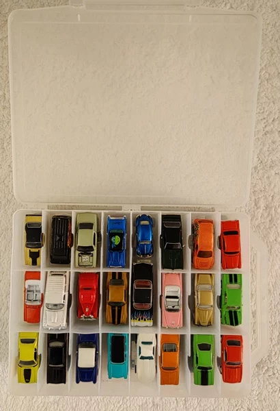 Hot Wheels & Johnny Lightening (Color: Various) (Brand: Hot Wheels, Johnny Lightening) (Description: 48 various Hot Wheels and Johnny Lightening vehicles, in double-sided clear 48-compartment Plano case.)