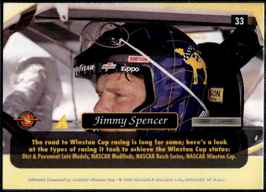 Brand: Pinnacle Type: Zenith Subtype: Road Pilots Kind of Packaging: Semi-Rigid with Sleeve Year: 1996 Unique Number: 33 Numbered Card: Driver: Jimmy Spencer