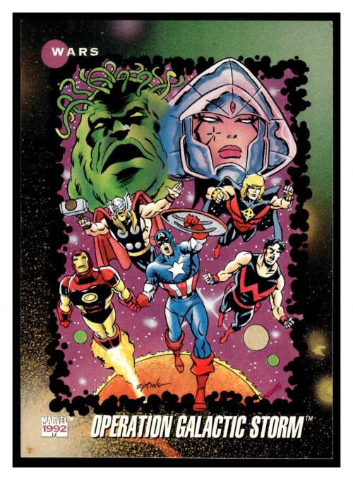 Entertainment (Brand: Impel Marvel) (Type: Marvel Universe) (Subtype: Wars) (Hall of Famer: ) (Superstar: ) (Rookie: ) (Kind of Packaging: Toploader with Sleeve) (Year: 1992) (Unique Number: 186) (Numbered Card: ) (Feature: Operation Galactic Storm)